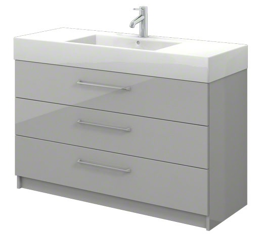 Wilgocioodporny mebel z trzema szufladami w szarym połysku. Szafka stojąca na cokole, front nakładany.