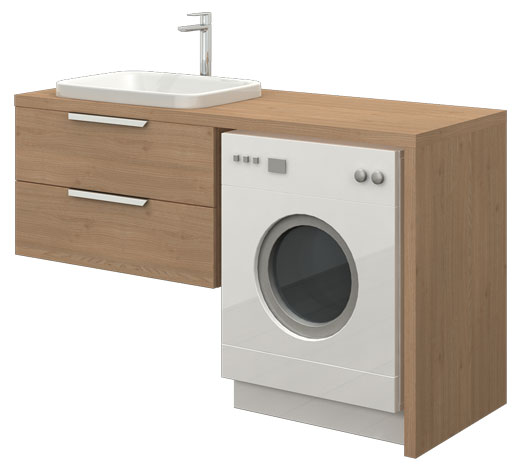 Wilgocioodporny mebel z dwiema szufladami przystosowany do zabudowy pralki. Szafka wisząca, front nakładany.