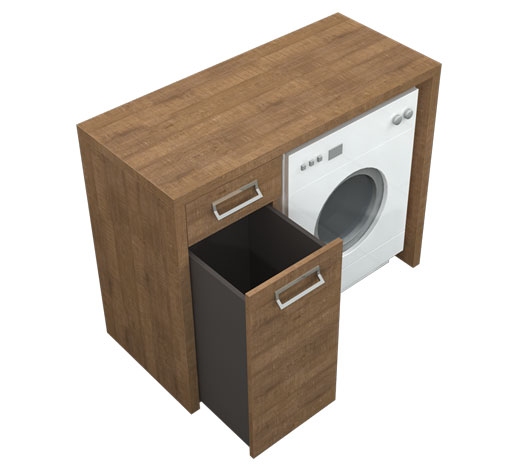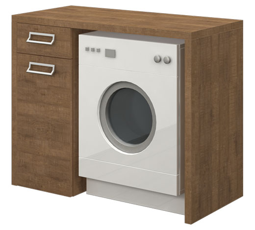 Wilgocioodporny mebel z szufladą oraz szufladą na pranie. Szafka stojąca z obudową na pralkę, front wewnętrzny.