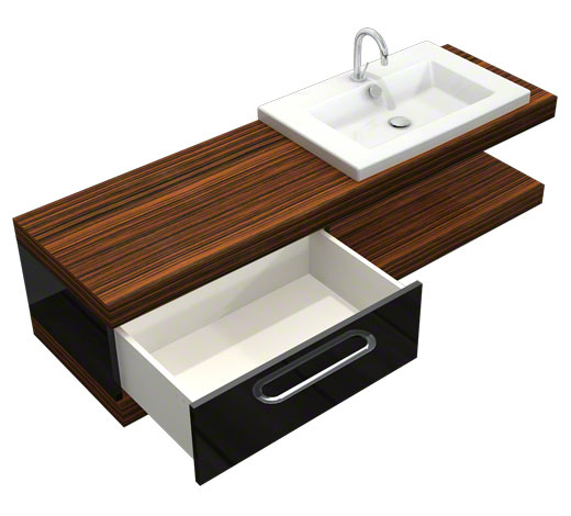 Wilgocioorpodny mebel z szufladą w połysku i grubym blatem. Szafka wisząca, front nakładany.
