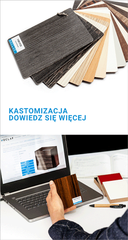 - laminowane płyty wiórowe lub MDF