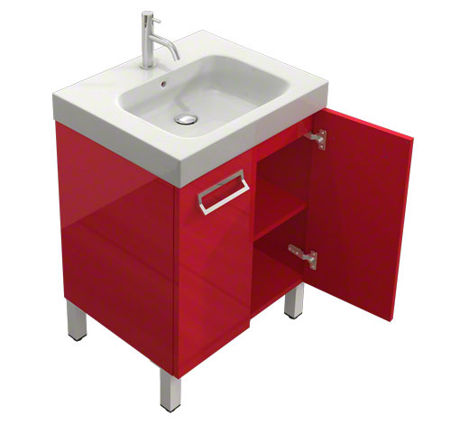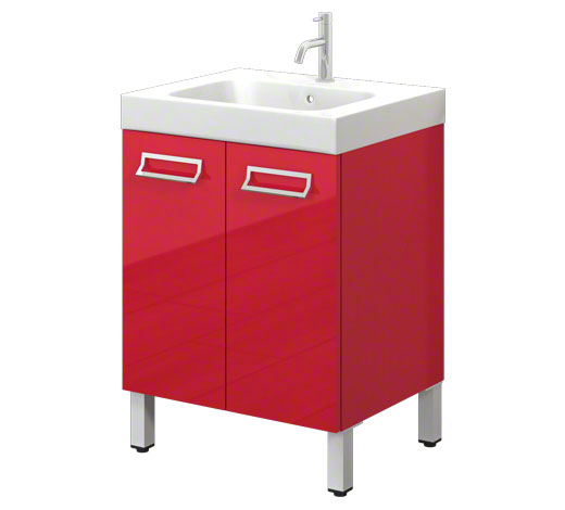 Wilgocioodporny mebel z drzwiami w oryginalnym czerwonym połysku. Szafka stojąca na nóżkach, front nakładany.