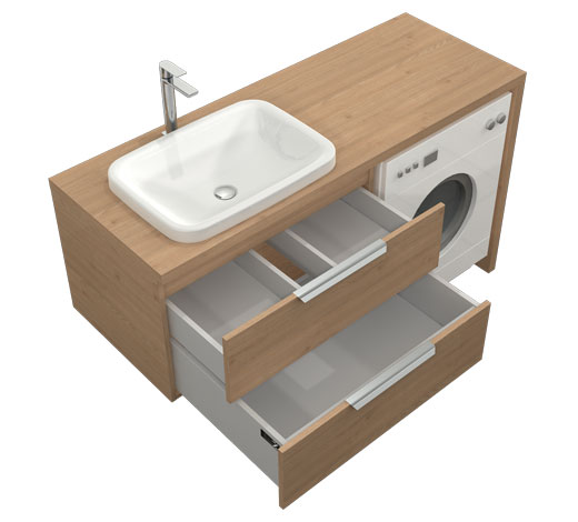 Wilgocioodporny mebel z dwiema szufladami przystosowany do zabudowy pralki. Szafka wisząca, front nakładany.
