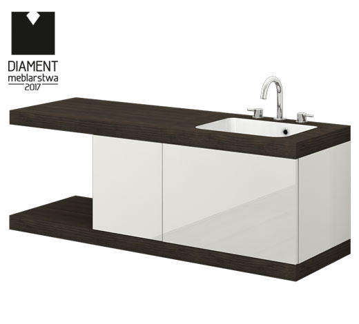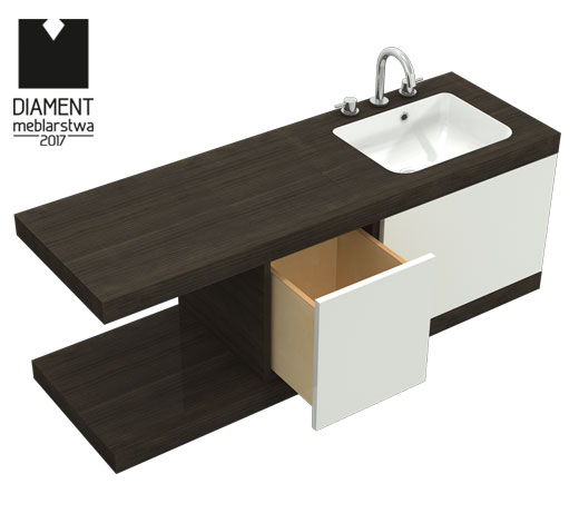Wilgocioodporny mebel z szufladą i przedłużonym blatem. Szafka wisząca, front nakładany. Szafka ze zintegrowaną umywalką.