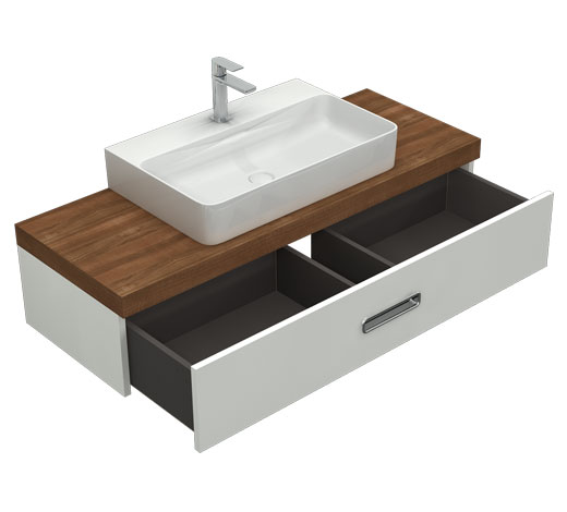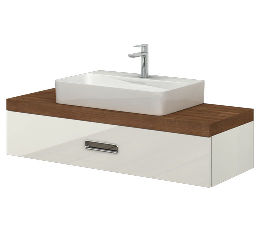 Wilgocioodporny mebel z dużą szufladą w połysku i blatem. Szafka wisząca, front nakładany.