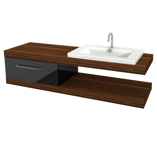 Wilgocioorpodny mebel z szufladą w połysku i grubym blatem. Szafka wisząca, front nakładany.